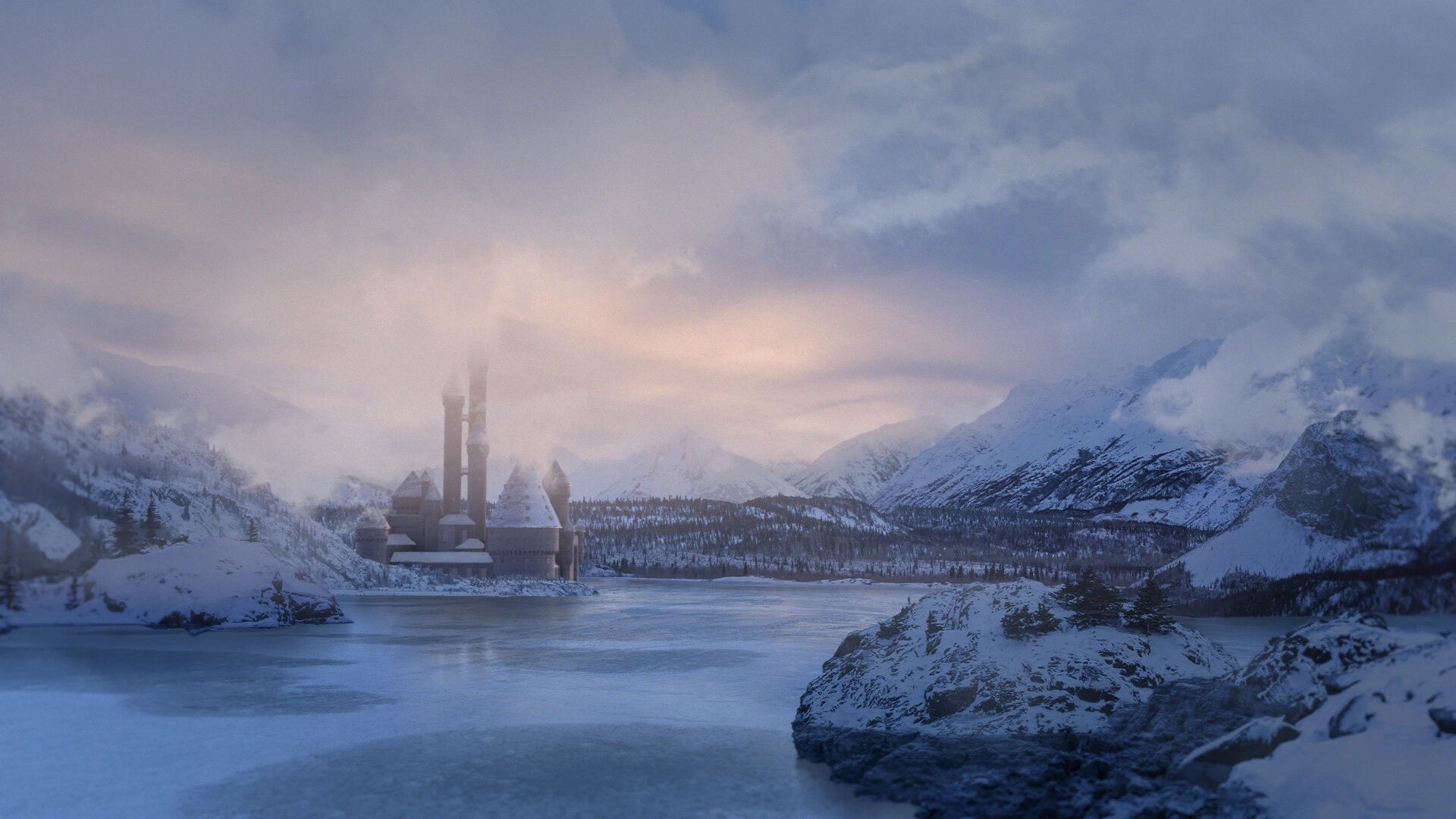 The digital matte painting was created in Photoshop with rough projection geometry modelled in Maya. The castle is a CG asset from KitBash3D which I enjoyed incorporating into the scene through snow paint-over in Photoshop. All compositing and camera projections were done in NukeX.